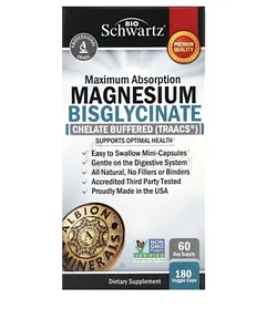 BIO SCHWARTZ MAGNESIUM BISGLYCINATE BOITE DE 180 CAPSULES VEGETALES
