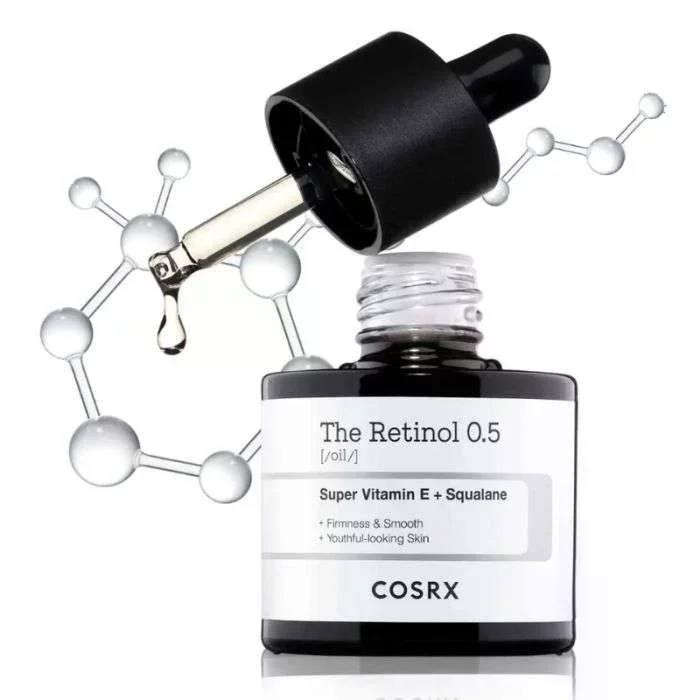 COSRX The Retinol 0.5 Oil – Huile au Rétinol Pur 0,5 % Anti-Âge Intensif L’huile au rétinol COSRX The Retinol 0.5 est un soin anti-âge concentré formulé avec 0,5 % de rétinol pur stabilisé, sans eau purifiée ni dérivés de rétinol. Conçue pour les utilisateurs déjà habitués au rétinol, elle cible efficacement la perte d’élasticité, la sécheresse cutanée et l’apparition des rides. Sa formule associe des actifs puissants pour améliorer visiblement la texture de la peau, stimuler le renouvellement cellulaire et renforcer la barrière cutanée. Résultat : une peau plus lisse, plus ferme et visiblement rajeunie. Actifs clés ✔ Rétinol pur (Vitamine A) : stimule la production de collagène et réduit les ridules ✔ Squalane végétal : hydrate, protège et limite les irritations ✔ Tocotriénol (Super Vitamine E) : puissant antioxydant anti-âge Indications • Rides et ridules • Perte d’élasticité • Peau sèche ou mature • Utilisateurs intermédiaires du rétinol Conseils d’utilisation Appliquer le soir 1 à 2 gouttes sur peau propre et sèche. Tapoter doucement jusqu’à absorption. Commencer par 2-3 utilisations par semaine puis augmenter progressivement. Utiliser un écran solaire SPF élevé le matin.