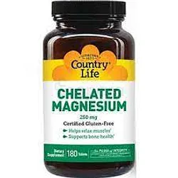 COUNTRY LIFE CHELATED MAGNESIUM 250MG GLUTEN FREE BOITE DE 180 COMPRIMES