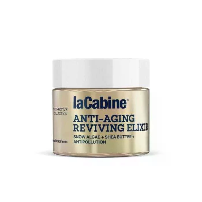 LA CABINE Anti Aging Reviving Elixir – Crème Illuminatrice Peaux Matures La crème Anti Aging Reviving Elixir La Cabine est un soin anti-âge complet conçu pour répondre aux besoins des peaux matures. Sa formule avancée associe poudre d’algue des neiges, fleur de marguerite, beurre de karité, perles soft-focus et bouclier anti-pollution pour lutter efficacement contre les rides, les taches pigmentaires et le teint terne. Ce soin agit pour stimuler la production de collagène, améliorer l’éclat et renforcer la barrière cutanée, laissant la peau plus ferme, plus lumineuse et visiblement rajeunie. Les perles soft-focus apportent un effet illuminateur immédiat tandis que le beurre de karité nourrit et protège la peau. Sa texture confortable enveloppe la peau d’hydratation et de douceur, idéale pour une utilisation quotidienne. ✔ Réduit rides et signes visibles de l’âge ✔ Illumine et unifie le teint ✔ Nourrit et renforce la barrière cutanée ✔ Convient aux peaux matures Conseils d’utilisation Appliquer sur le visage et le cou propres, masser délicatement jusqu’à absorption complète. Utiliser quotidiennement matin et/ou soir.