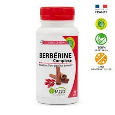 Berbérine Complexe MGD – Complément Alimentaire Glycémie & Métabolisme (90 gélules) Le Berbérine Complexe MGD est un complément alimentaire formulé à base de plantes et d’oligo-éléments reconnus pour soutenir l’équilibre du métabolisme du glucose. Il associe berbérine titrée, cannelle et chrome, trois actifs clés qui contribuent au maintien d’une glycémie normale et au bon fonctionnement du métabolisme énergétique. Inspiré des traditions médicinales asiatiques, ce complexe agit en synergie pour accompagner les personnes souhaitant réguler naturellement leur taux de sucre sanguin. Bienfaits de Berbérine Complexe MGD ✔ Favorise le contrôle du taux de glucose sanguin ✔ Contribue au maintien d’une glycémie normale ✔ Soutient le métabolisme énergétique ✔ Formule concentrée en berbérine titrée à 90 % ✔ Association plante + oligo-élément pour une action complète Ingrédients clés • Berbérine (Berberis aristata) : aide au contrôle du glucose sanguin • Cannelle (Cinnamomum verum) : contribue au maintien d’une glycémie normale • Chrome : participe au métabolisme des macronutriments et à la régulation de la glycémie Composition Extrait de racine de berbéris titré à 90 % de berbérine, extrait d’écorce de cannelle, chlorure de chrome, gélule végétale (pullulan), cellulose microcristalline. Conseils d’utilisation Prendre 3 gélules le matin et 2 gélules le midi avant les repas. Respecter les doses recommandées. Pour qui ? • Personnes souhaitant réguler leur glycémie • Personnes suivant un régime équilibré pour le métabolisme du sucre • Adultes recherchant un soutien naturel