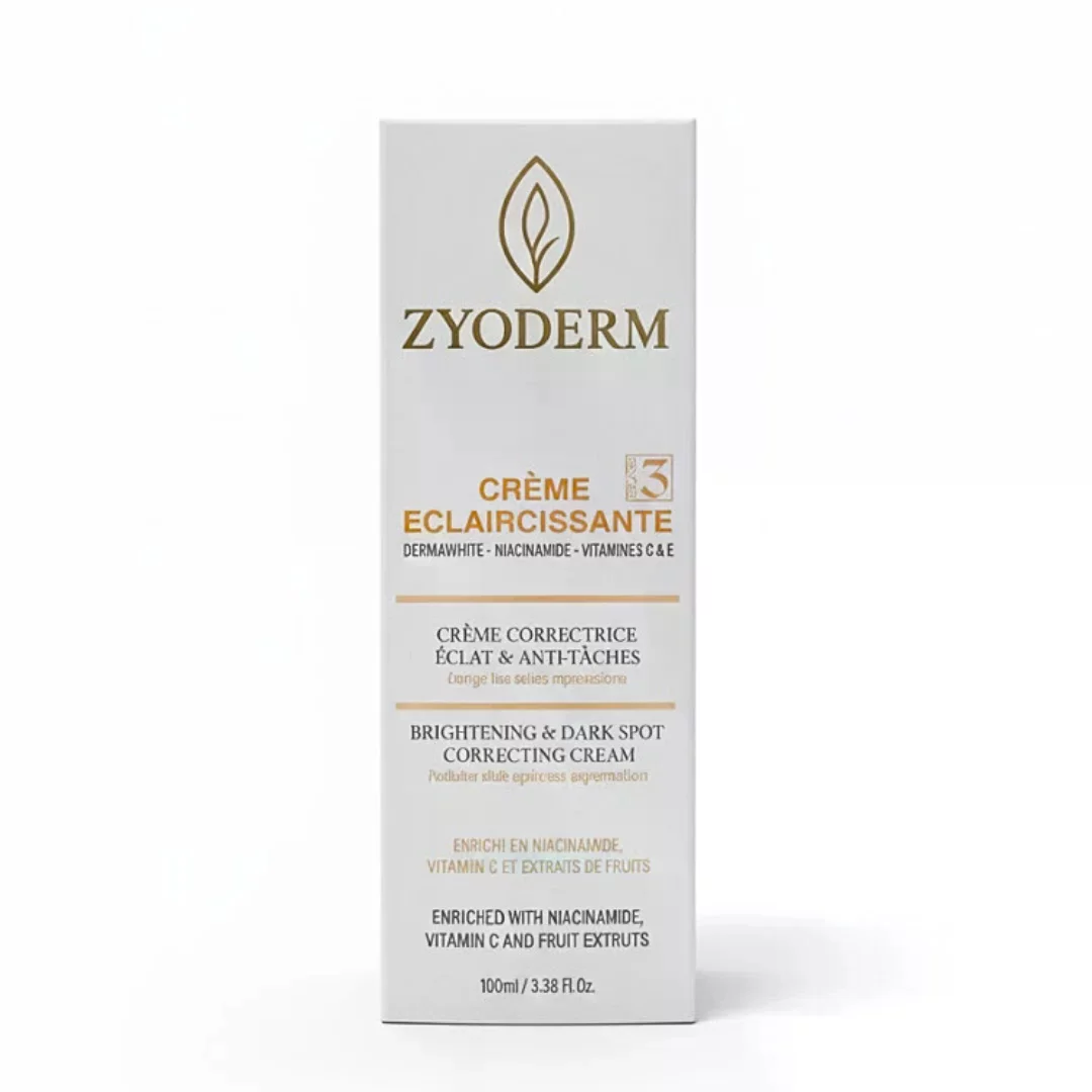 Zyoderm Crème Éclaircissante x3 100ml – Soin Unifiant & Anti-Taches La Zyoderm Crème Éclaircissante x3 100ml est un soin intensif formulé pour éclaircir progressivement le teint, réduire l’apparence des taches pigmentaires et améliorer l’uniformité de la peau. Grâce à son complexe d’actifs éclaircissants, hydratants et antioxydants, elle aide à réguler la production de mélanine tout en nourrissant la peau en profondeur. Son action triple effet — éclaircissante, unifiante et protectrice — permet de retrouver une peau plus lumineuse, douce et homogène jour après jour. Sa texture légère pénètre rapidement sans laisser de film gras, ce qui la rend adaptée à un usage quotidien sur tous types de peaux, même sensibles. Les bienfaits de la crème Zyoderm ✔ Aide à réduire les taches brunes et irrégularités du teint ✔ Éclaircit progressivement la peau ✔ Hydrate et nourrit en profondeur ✔ Améliore l’éclat et l’uniformité du teint ✔ Texture légère adaptée à tous types de peaux Pour qui ? • Peaux sujettes aux taches pigmentaires • Teint terne ou irrégulier • Peaux souhaitant unifier et illuminer leur carnation Conseils d’utilisation Appliquer matin et/ou soir sur une peau propre et sèche. Masser délicatement jusqu’à absorption complète. Utiliser une protection solaire en journée pour optimiser les résultats.